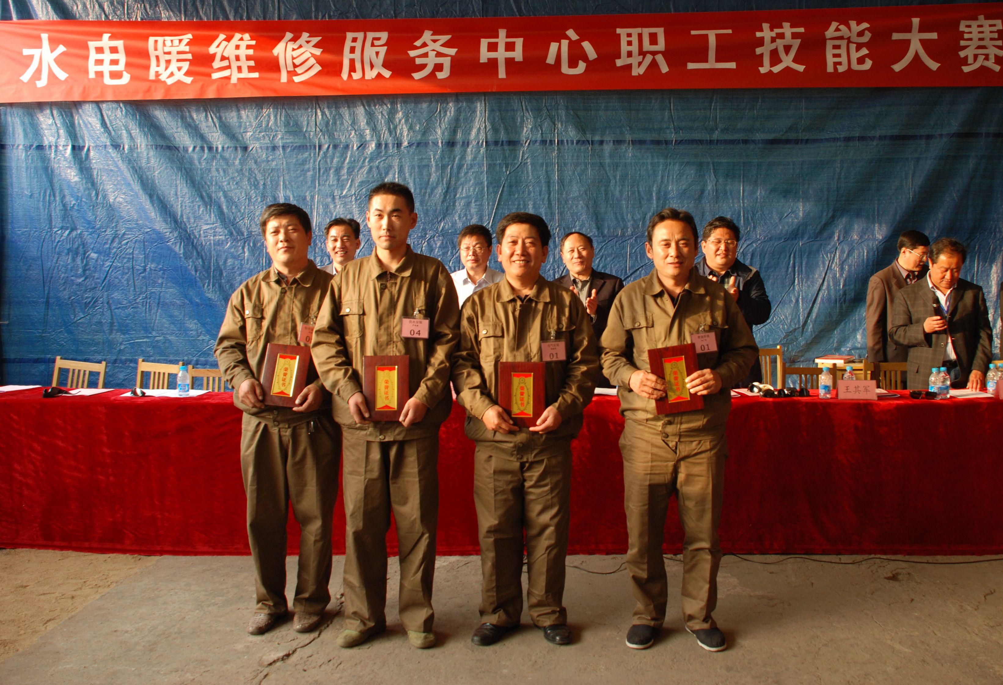 大赛分普通焊接、电器安装、供水管道安装、铝合金推拉窗安装四个组进行,每个组由六个职工组成。比赛设立了场地准备组、工具材料准备组、裁判组,制订了各个比赛项目的技术和时间要求。经过紧张比赛,孙广东、鲁德勇、尹成海、玄家华分别获得普通焊接、电器安装、供水管道安装、铝合金推拉窗安装项目的一等奖。