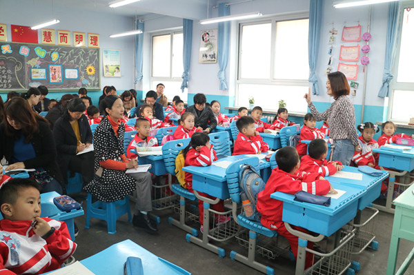 首先由岳峰小学尹延红老师为一年级同学上的《有趣的提手旁》一课,李老师通过游戏的形式展开课堂,她事先准备了很多带提手旁的字藏在一边,学生做一个动作说一个词,老师就拿出一个字贴在黑板上让学生认,还让学生读了《猴子下山》这篇文章,并从文章里找出带提手旁的字。充分体现了对低年级识字教学的有效整合,教师在尊重儿童认知规律的前提下,运用做游戏的方法,让学生兴趣大增,知识点处理的扎扎实实,课堂上迸发出了师生激情,效果斐然。
