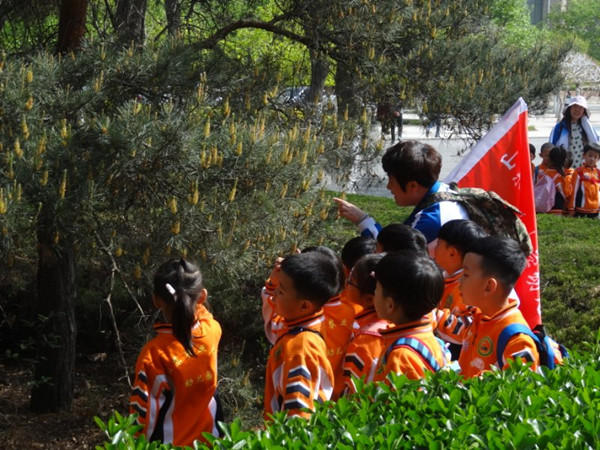 上午9点,孩子们在老师的带领下,排着整齐的队伍出发啦!一路上,孩子们欣赏着道路两旁的美景,一边走一边与小伙伴谈论着自己的发现。小朋友们走过了古老的礼堂、与伟大的学者爷爷跨时代合影、走过花园长廊、穿过林荫小道,一起在紫藤萝园里听老师讲紫藤花的故事。孩子们还在老师的介绍下知道原来松树也会开花;认识了“中华槭”,也就是我们常说的枫树,每看到一种植物的变化,孩子们就非常兴奋,争先恐后的说着自己的发现,寻找着春天的足迹,在与大自然的亲密接触中,到处留下了孩子们好奇的问答声和欢笑声!