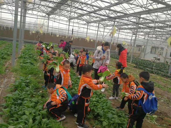 上午8:00,老师组织好孩子准备出发了,看那一张张笑脸,多期待今天的快乐之旅啊!一路上,孩子们的说笑声、欢歌声不断,经过一个小时的车程,终于到达了青青农场,孩子们一下子被整齐排列的大棚吸引住了。在工作人员的带领下,孩子们分批走进西红柿大棚,西葫芦、菠菜、芹菜大棚,体验观察和采摘的乐趣。工作人员还给孩子们讲解了各种有机蔬菜的培植过程,让孩子们体会到劳动的辛苦和果实收货的不易。