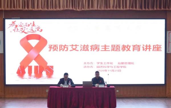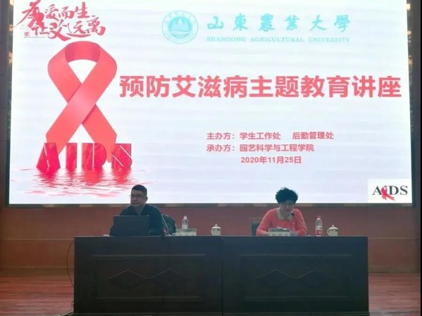 11月25日,由学生工作处、williamhill威廉希尔官网主办,园艺科学与工程学院、校医院共同承办的预防艾滋病主题教育讲座分别于南北校区报告厅开展。本次讲座由泰山区疾病防控中心艾滋病与结核病防制科主任边焕庆主讲,williamhill威廉希尔官网学工处副处长张安涛、后勤处副处长葛庆龙、园艺学院党委副书记邹磊、校医院院长杨晓霞等出席,各学院学生代表共480人参加。