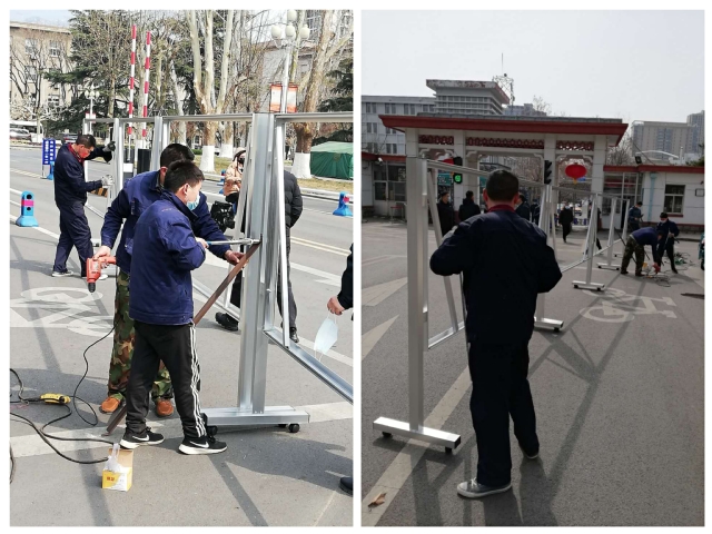 3月22日中午11时,接到学校办公室紧急加固制造宣传栏的任务后,岱宗校区铁工班班长李学军积极发扬共产党员的模范先锋作用,组织带领专班,加班加点地完成了学校疫情防控宣传的主体任务。