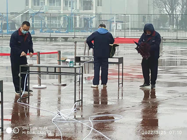 3月25日早7点15分,学校紧急全员核酸检测,泮河校区水电专班积极筹划电力供应工作,现场安装插座和应急照明灯,确保全员核酸检测按时完成。