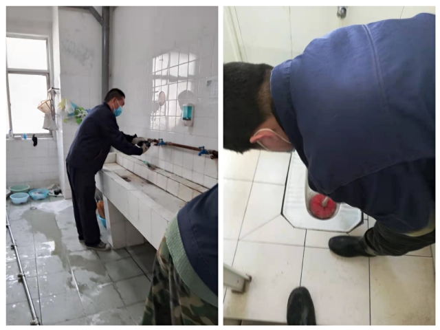 3月22日、3月30日、3月31日,泮河校区13号公寓卫生间以及7号、17号公寓管道发生堵塞,接到饮食中心和学工处的紧急报修后,副班长亓培庆积极组织带领工作专班,打破工种责任划分,查原因、疏管道,有效维护疫情管控期间的学生正常住宿环境。