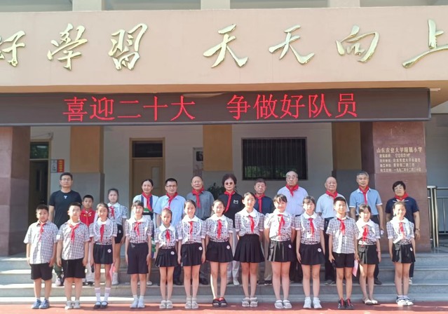 报告团张立德、苑来学、刘燕、王成义、孙熙光、王延耀一行6人不畏酷暑、不辞辛劳走进附属学校、深入班级,结合自己的工作学习经历,深入浅出地向孩子们讲述了党史和新中国史,紧扣“喜迎二十大 争做好队员”这一主题,激励孩子们树立远大的理想,努力成长为能够担当民族复兴大任的时代新人!