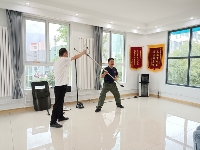 培训会上,王洪义详细讲述了校园预防暴力的重要性、校园预防暴力的主要内容,并结合相关案例重点讲解了“六个意识、五个要素、四个程序”校园预防暴力的方法。随后王洪义对保安进行了警务室八件套使用培训,并进行了实战练习。