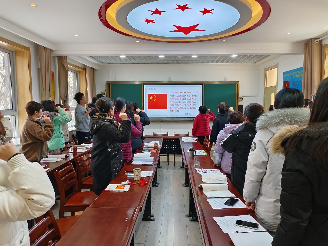 全体教师进行了师德师风宣誓活动,刘焕芬校长领誓,全体教师右手举拳,面对国旗,庄严宣誓。最后,老师们认真签订2024年师德师风承诺书,并纷纷表示一定严格要求自己,立足本职工作,坚守教育初心,矢志为党育人。