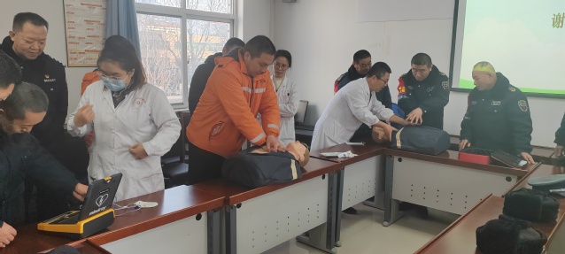 活动中,医护人员对心肺复苏技能的重要性、技术操作和理论知识进行了讲解,随后利用模拟人进行现场示范。安保人员积极参与,踊跃在模型上演练,医护人员现场纠正和指导,主动分享应急处理技巧。培训会模拟应急场景,演示医务人员与安保队员在多种条件下协同开展应急救援,提高了应急救援的时效性和针对性。