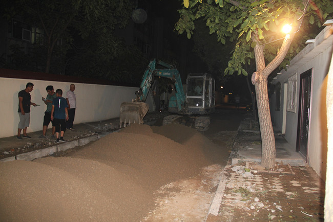 今年暑期,施工改造项目共有16项,涉及教学设施改善、校园环境美化等方面,目前经过一个暑假的忙碌16个施工项目已全部完成。炎热的夏天,北校住宅区改暖改水工作正如火如荼进行。作为学校一项重点工程,暑假期间后勤职工与施工队伍克服工期紧、任务重、阴雨天气及泰安市创城期间材料供应不及时等诸多不利因素,顺利完成了北校住宅区19条道路的铺设整修任务。下午3:00,工作人员与施工人员一起奋战在工作前沿。
